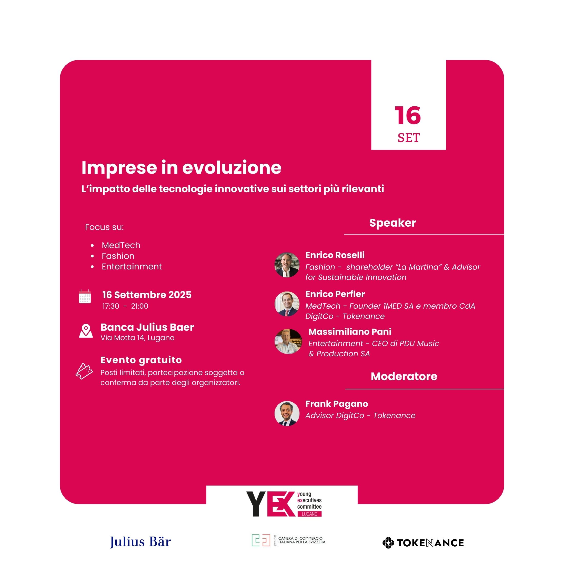 Evento gratuito grazie al supporto di Julius Baer e Tokenance