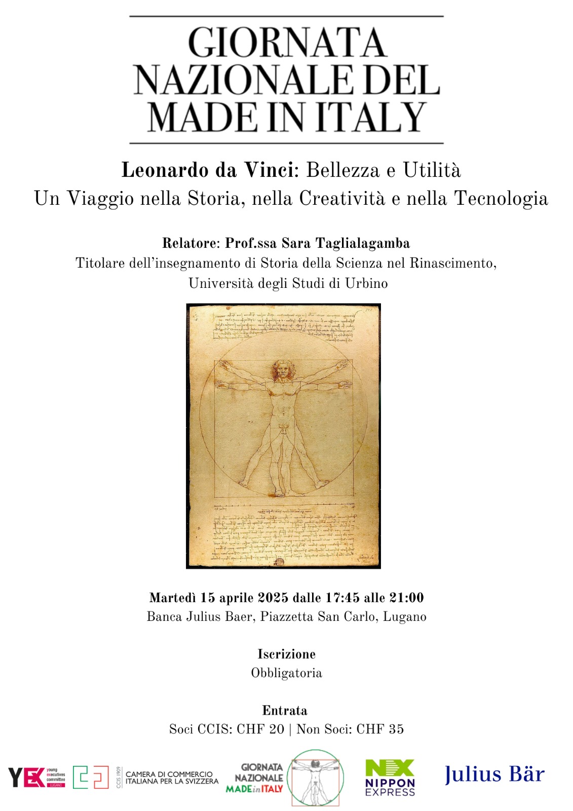 Prof.ssa Sara Taglialagamba – Storica dell’arte con PhD e Post PhD alla Sorbona, ha affiancato il leggendario Carlo Pedretti – massimo esperto di Leonardo da Vinci. Appassionata di meccanica, automazione e robotica, ha pubblicato studi di riferimento e ricevuto prestigiosi riconoscimenti internazionali. Ha inoltre insegnato in istituzioni di eccellenza come UNAM e UCLA. Oggi borsista al Museo Galileo, è la mente dietro la scoperta della reale funzionalità del primo robot progettato da Leonardo nel 1494.